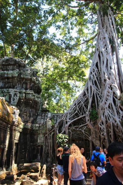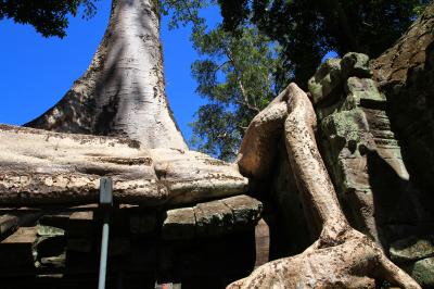 こちらの遺跡の何が面白いかというと、密林から発見された遺跡を、元のジャングルをできるだけ残したまま修復しているというところで、巨大なガジュマルの木が壮大な石造りの遺跡を飲み込もうとしているその姿が圧倒的なスケールで迫ります。