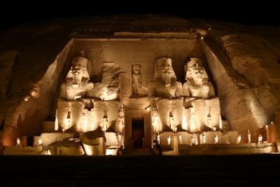 個人での旅行ですが、神殿から近距離のセティアブシンベルに宿泊しましたので、夜明け、昼間、夜(音と光のショー)と3回観光しました。