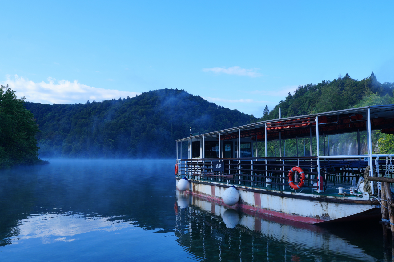 クロアチアのプリトヴィッツエ国立公園内の湖沼をめぐる遊覧船です。遊覧船といっても、周遊するためにあるのではなく、ハイキングコースの始点と終点をつないでいますので、一方通行で、駅間を結ぶバスのような感じになっています。