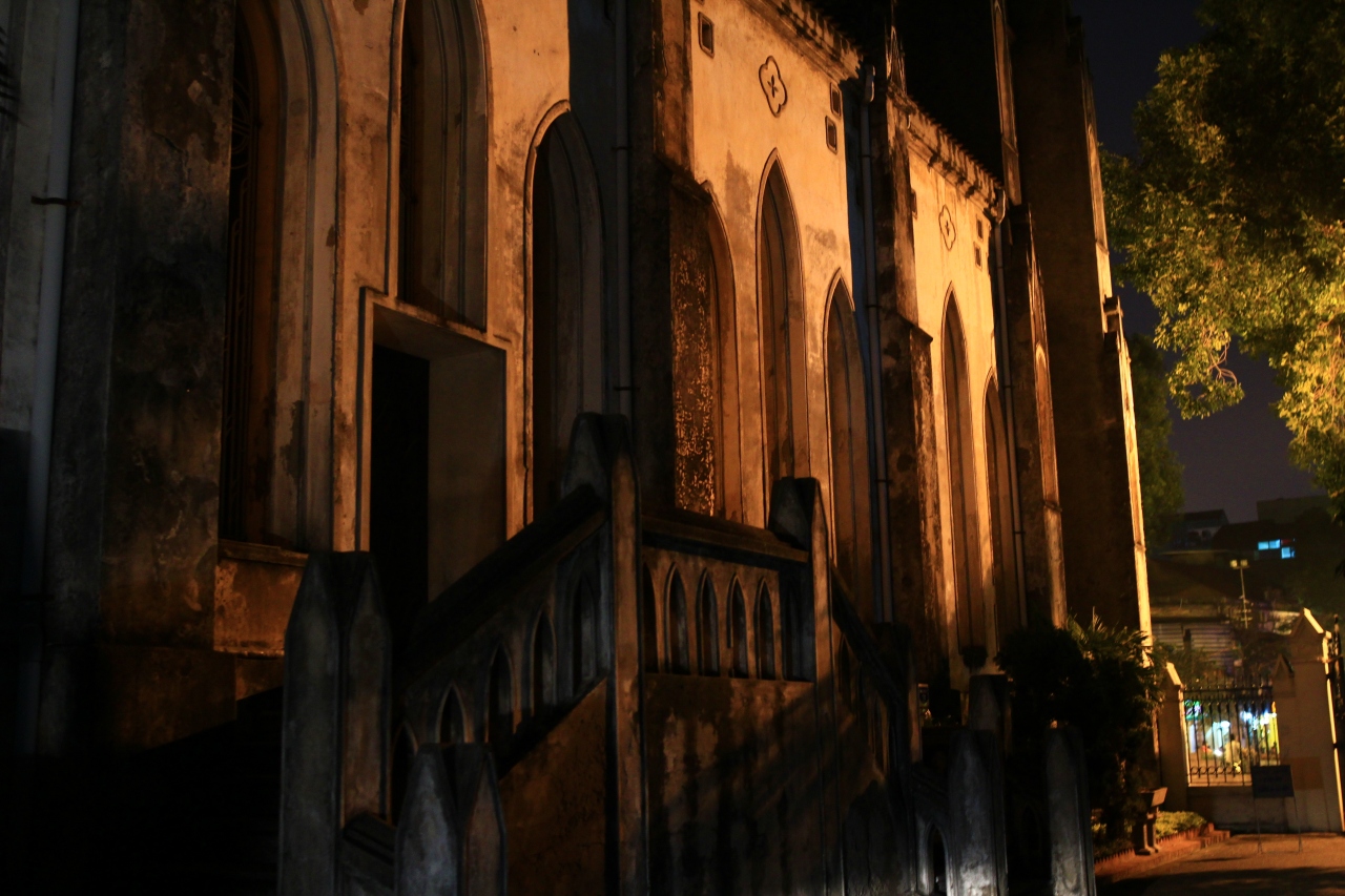 また、写真などでは夜はライトアップしているかと思いましたが、街頭が少しあるだけで、古びて黒ずんだ外観と合わせて少し不気味なくらいでした。