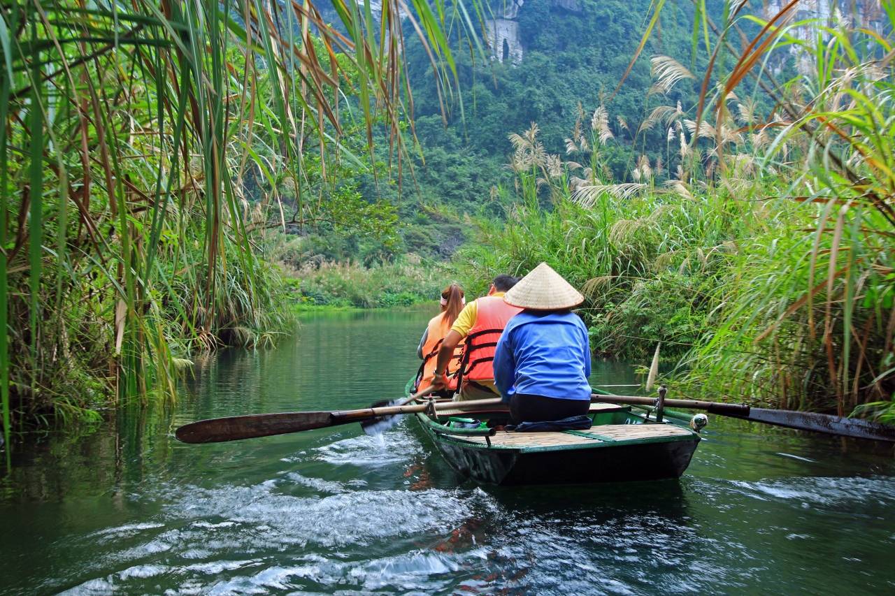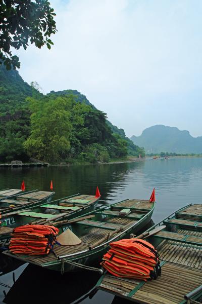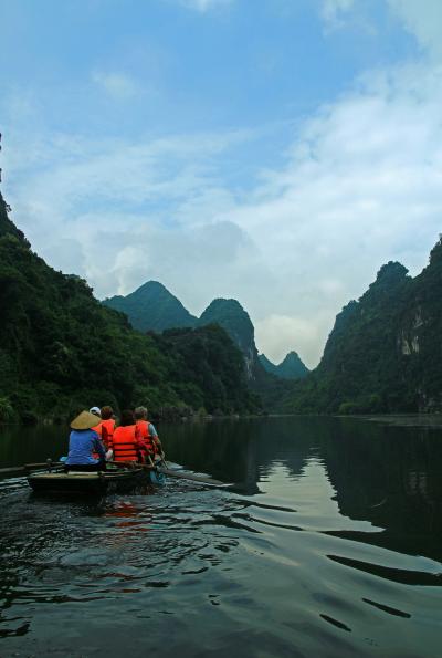 ニンビン省のこの付近は、ハロン湾と同じく石灰質の岩山が削れてできた奇岩が林立し、陸のハロン湾とも呼ばれています。観光地としては、付近にあるタムコックのほうが同じような景観ですが、現地では人気があるようですが、世界遺産に指定されたのはこちらです。