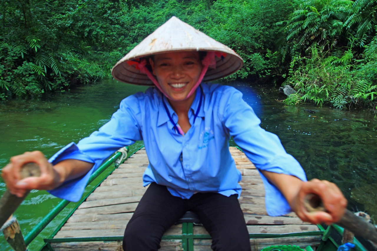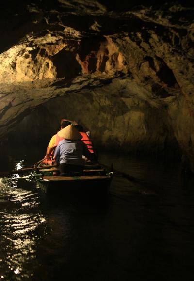 ハロン湾が船で行くとしたら、こちらは、川を小さな手漕ぎボートで下ります。