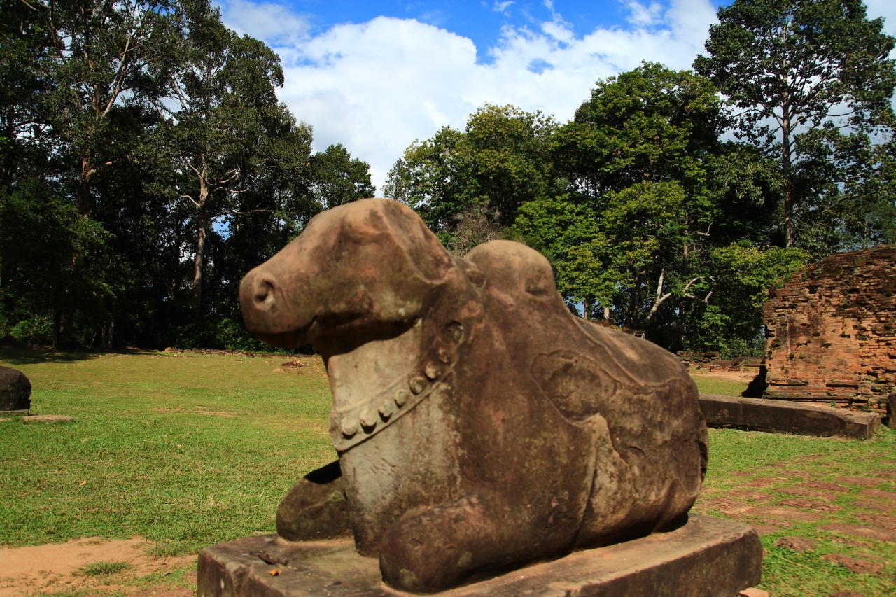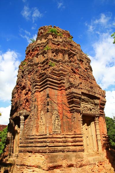 プリア・コーとは、ロリュオス遺跡群の中にあり、アンコール遺跡より年代的には昔になります。寺院の構築も精巧ですが、時代がたっているせいか、劣化が激しいです。