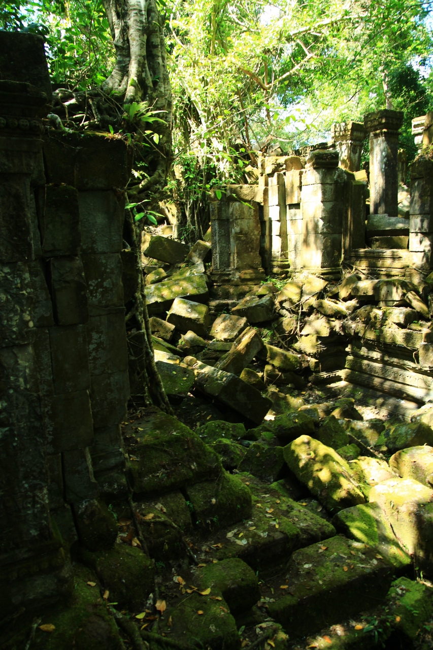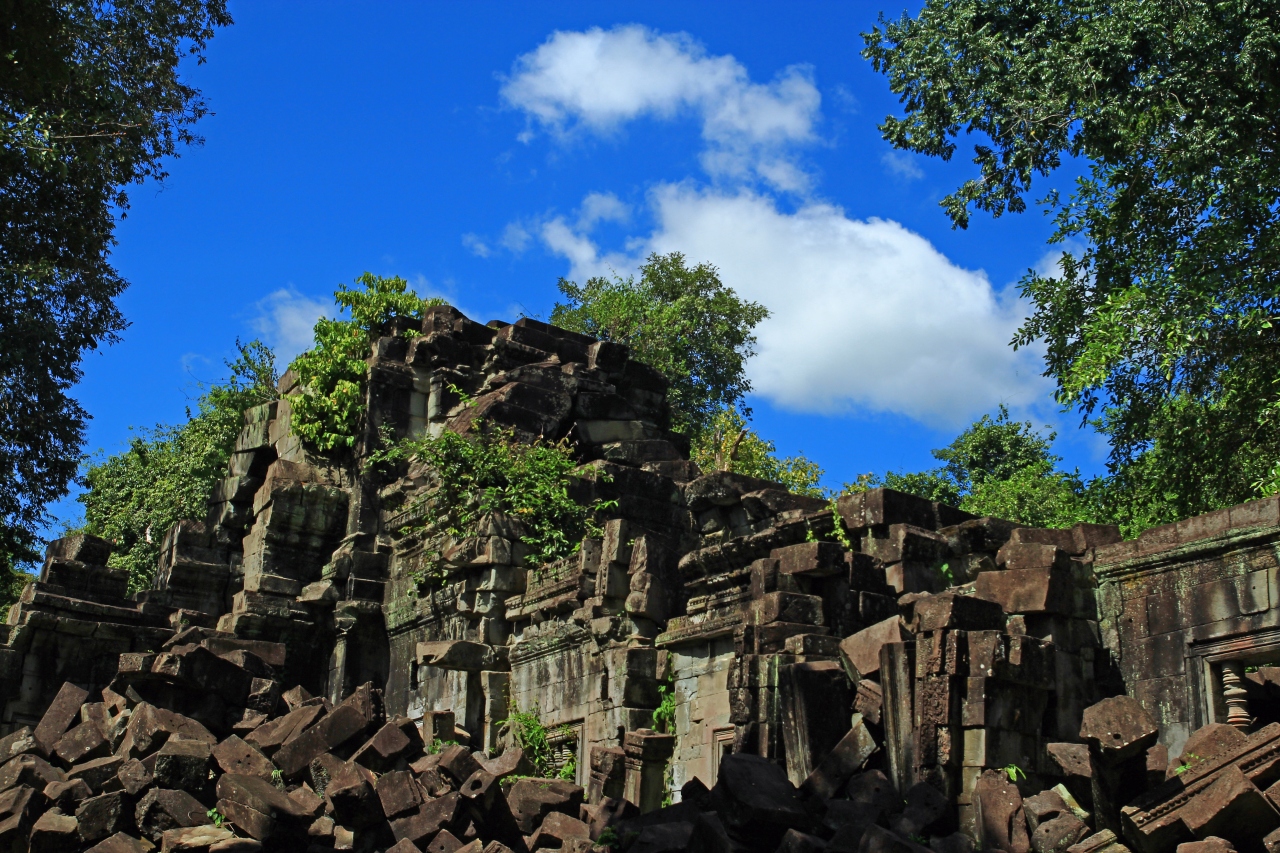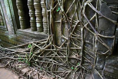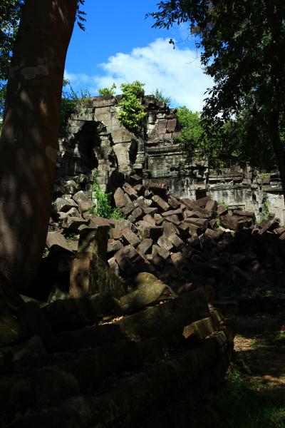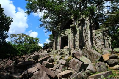 同じような遺跡にタ・プロムもありますが、タ・プロムが密林を残したまま修復されているのに対し、こちらは、ほぼ密林から発見された状態の遺跡を観光できるため、迫力があります。