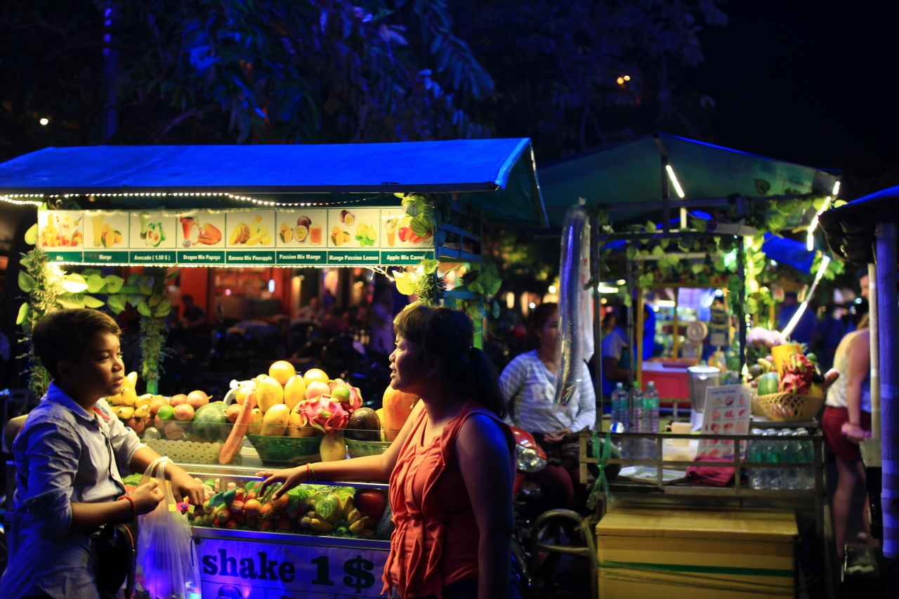 カンボジアというと、やはり貧しいイメージで、インドやネパールの市場のようなところを想像していましたが、アンコールは今や世界的な観光地。ほぼオールナイトで開いていて、街角には多くの警官が立っており、危険そうな感じは全くしませんでした。