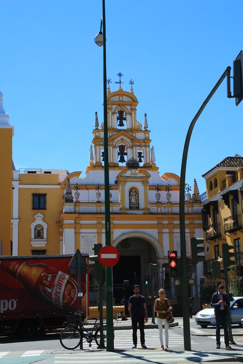 セビリアの観光で、現地のバスツアーに申し込んだところ、この教会の前が発着地でしたので、待ち時間の間に完工しました。