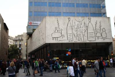 バルセロナのカテドラルに面したごく普通の建物に、まるで宣伝か落書きのように見える壁画がありますが、ピカソが描いた絵で、実物だそうです。