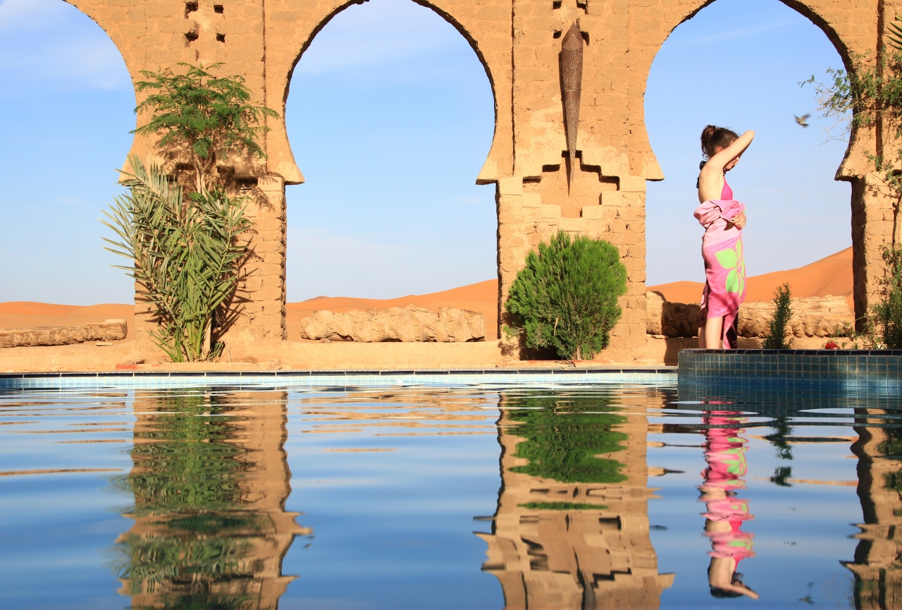 メルズーガ大砂丘の周囲にはいくつかホテルがありますが、ここはその中でも比較的設備が良いホテルと聞いていました。