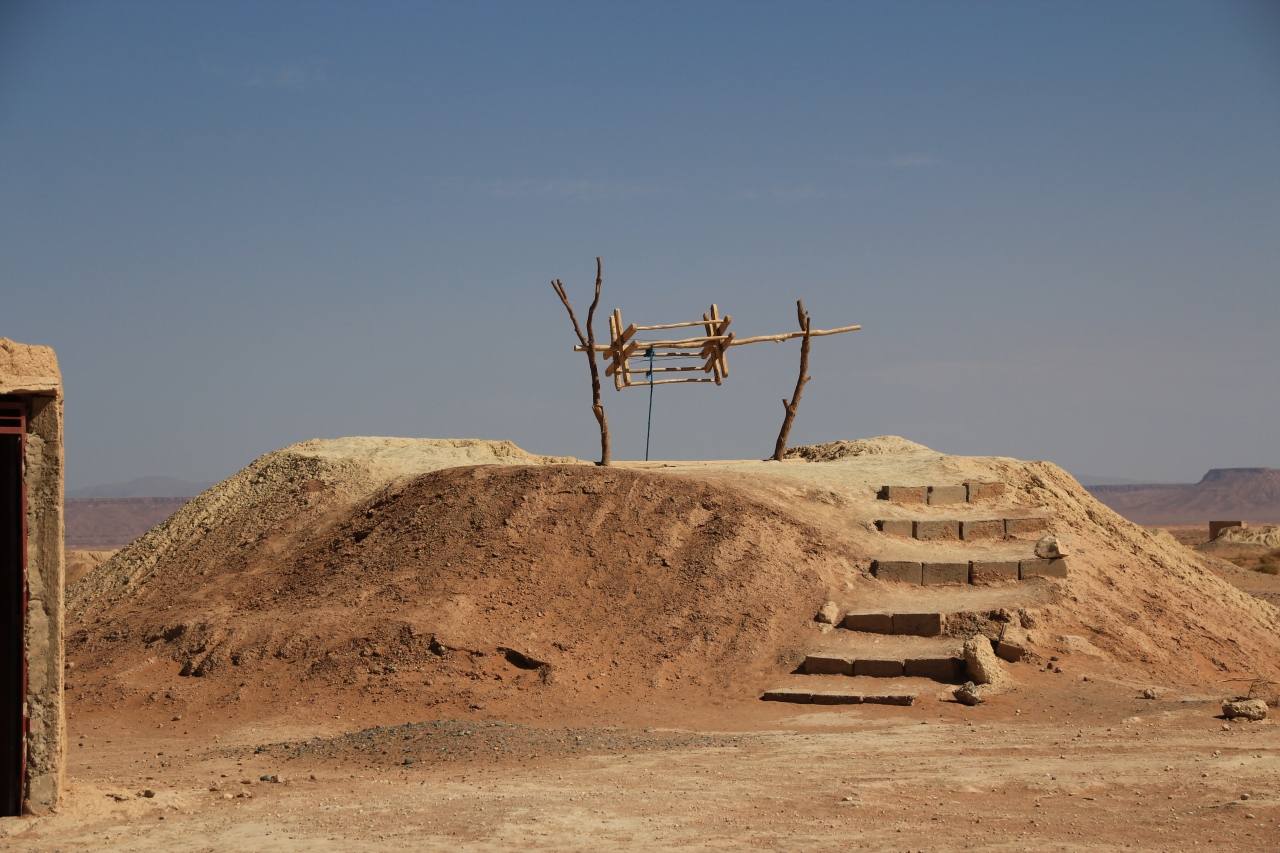 エルフードからカスバ街道に向かう道すがらの大ステップ地帯に沢山の塚のようなものが並んでいます。