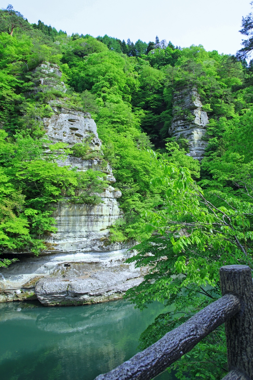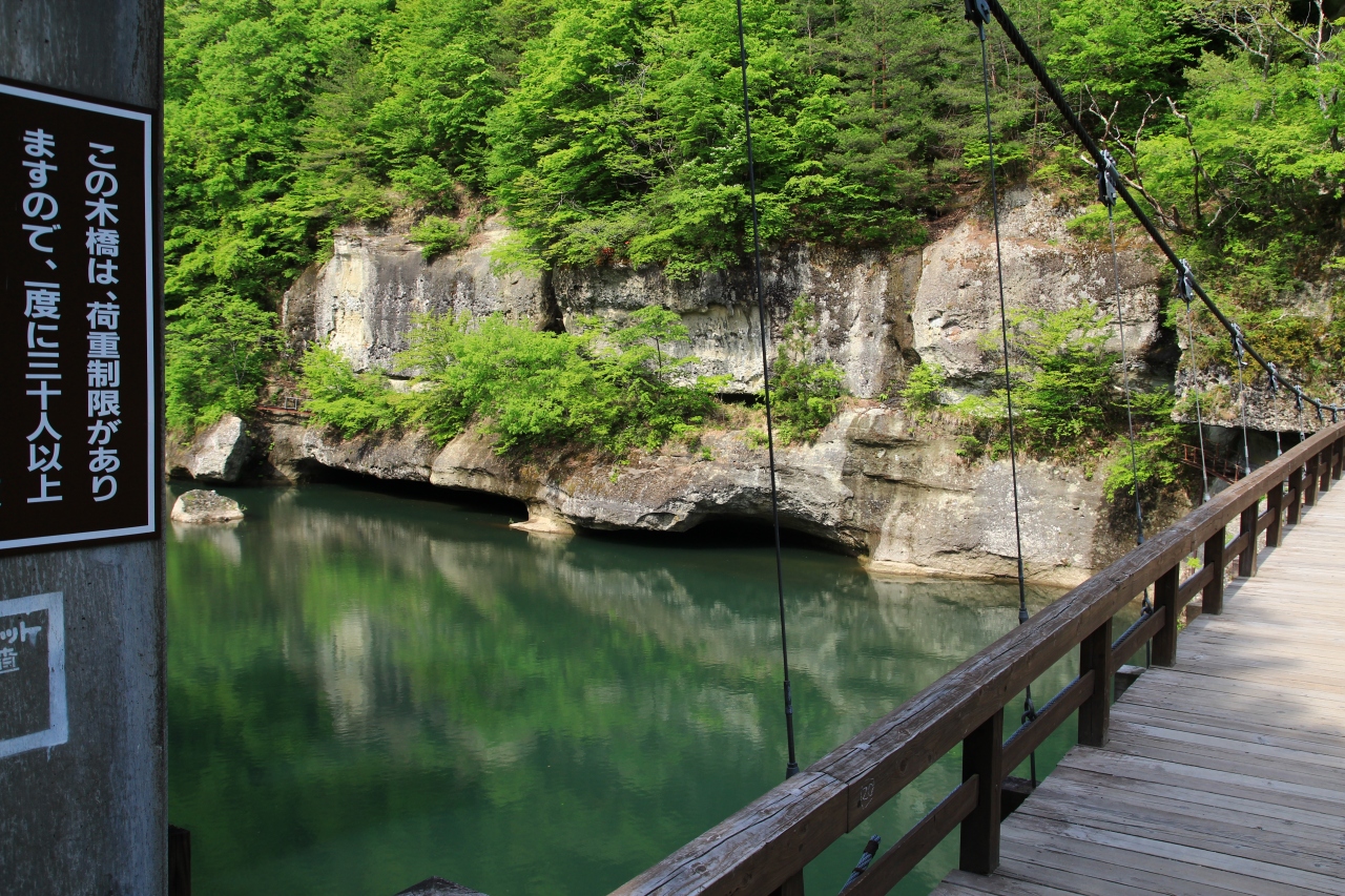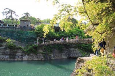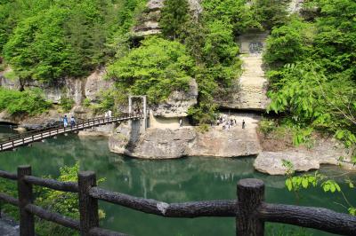 散策範囲はあまり広くありませんが、揺れる吊り橋に緑色の水を湛えた渓谷、そして奇岩の連続と、イメージとしては四国の大歩危峡を小さくしたというような感じですね。