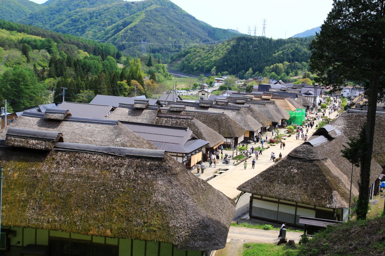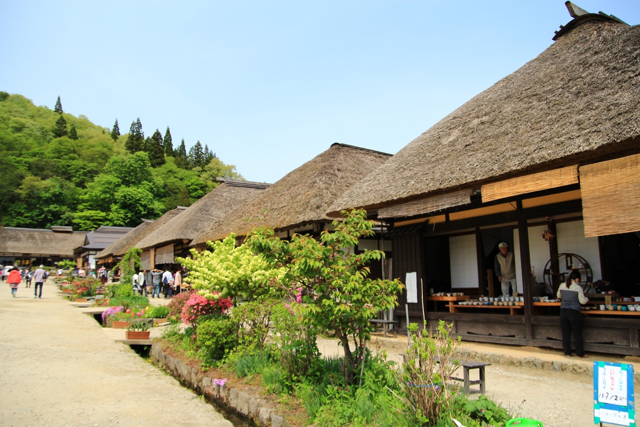 南会津の一般道で行くと、えっ、こんな場所に?というような山間の山中にいきなりあらわれる江戸時代にタイムスリップしたかのような街並みです。
