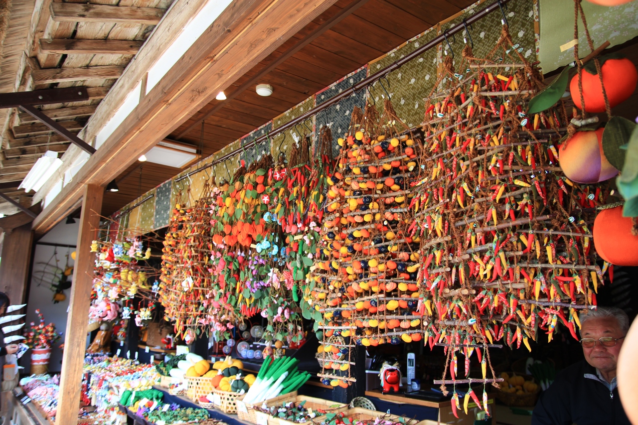 昔ながらの茅葺の屋根の家が通りの周りに立ち並びます。でもそれぞれの家は、暮らすためのものというわけではなく、全て観光用のお店です。