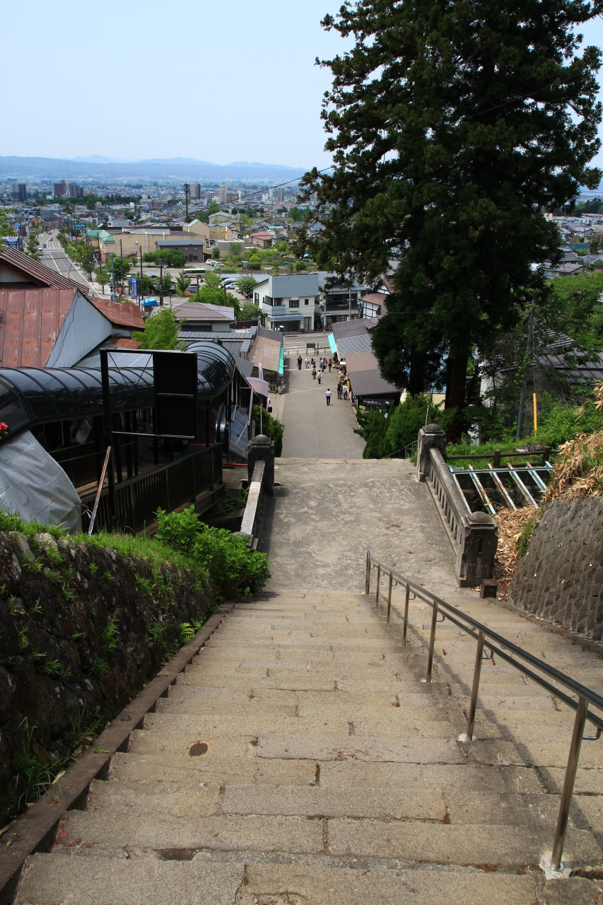 その場所へは石段を使って上がることになりますが、石段に隣接してエスカレーターがあります。でも、登りのみで250円という値段ですので、正直歩いたほうが良いです。