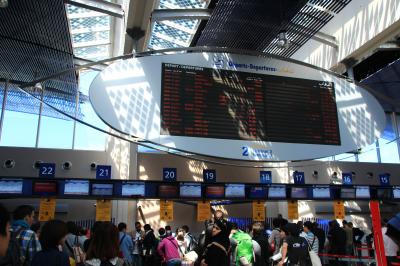 時間がかかるとの噂の入国審査は、たまたま飛行機が自分たちの一便だったので、それほどではありませんでしたが、出国審査のほうに時間がかかりました。