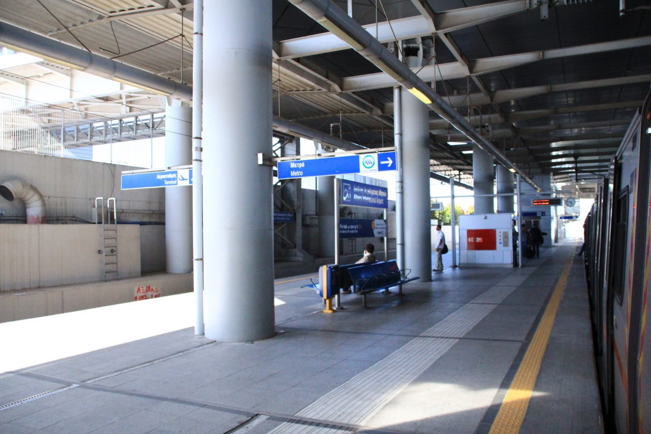 アテネ空港の地下鉄乗り場は、空港から高架を渡った先にありますが、郊外列車と同じホームですので、最初は戸惑いましたが、駅の人に聞いたところ、ホーム番号でわかれているようです。