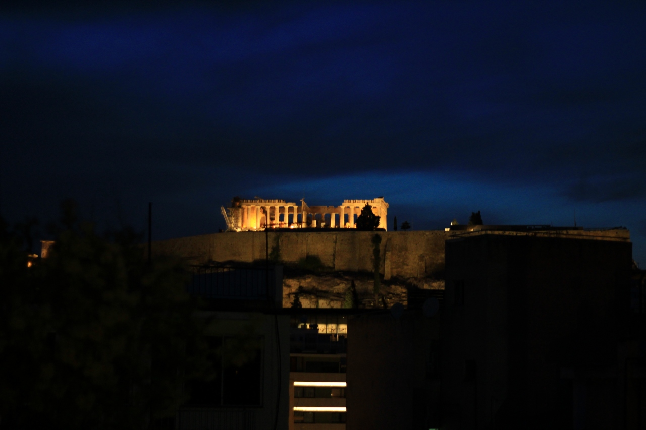 アテネの旅行情報を見たところ、アクロポリスを望むレストランはいくつもありますが、特にアクロポリスに近いレストランは夜はタクシーでの送迎が必須とガイドブックに書かれていたり、現在の状況では夜あまり出歩けないかなと考えて、ホテルのレストランで望見出来る場所ということで探しました。