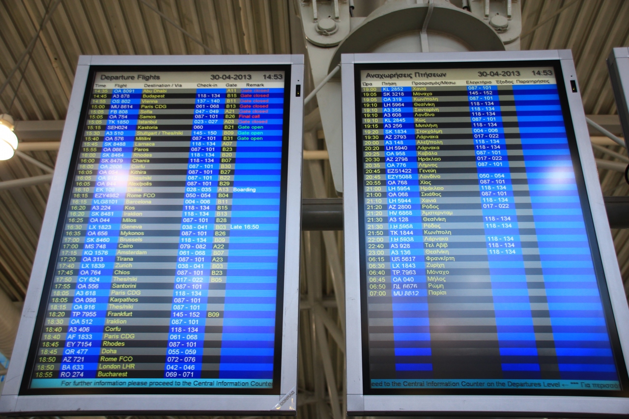 アテネの主要国際空港です。金融危機の関係か、以前より飛行機の便数は少なくなったようですが、それでも多くのヨーロッパ各国からの飛行機が離発着しています。