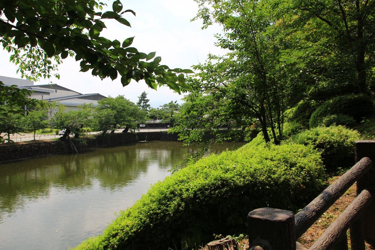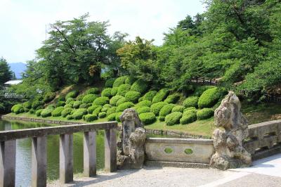 米沢城跡は堀と石垣が残るのみですが、本丸のあった場所には上杉神社が建立されており、周囲は松岬公園として整備されています。