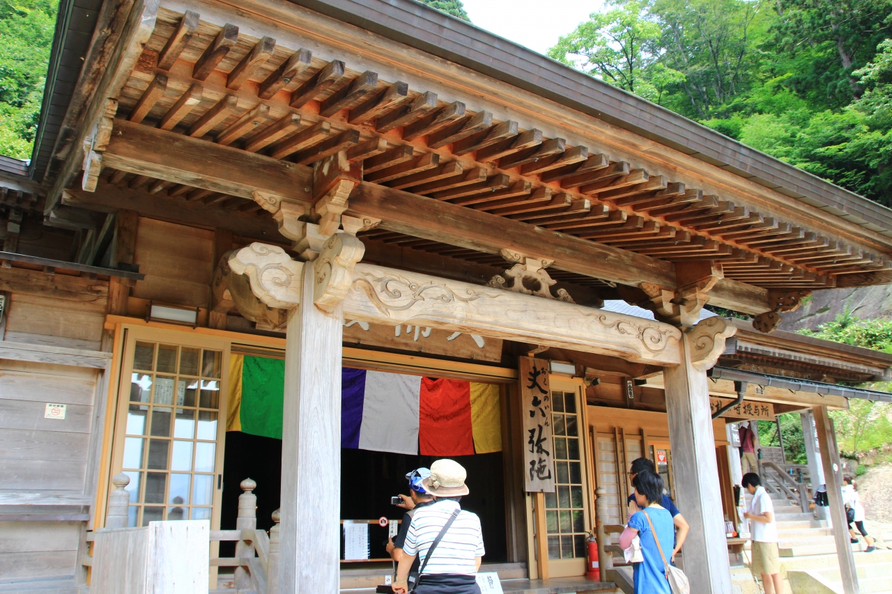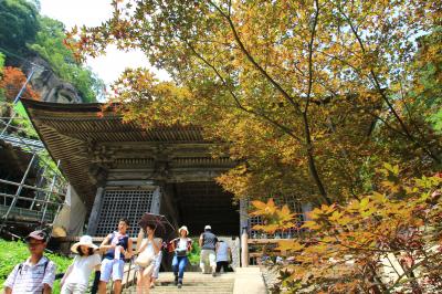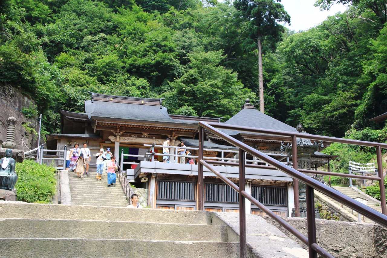 山寺と言えば、松尾芭蕉の奥の細道ですが、山道に入る前の金堂の前に芭蕉と河合曾良の像があります。もちろん、「静けさや…」の句碑も一緒にあります。