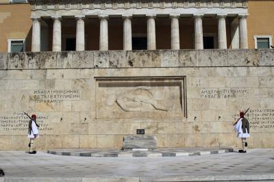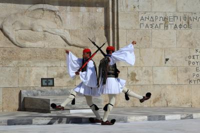 国会議事堂の前にある独立戦争の時の無名戦士の墓ですが、この前には昔の民族衣装を着た衛兵がたっており、1時おき?くらいに交代式を行います。
