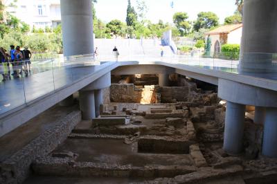アクロポリスの南側山麓にありますが、最近できたようで、非常に綺麗です。もう一つ注目は、遺跡の上に建てられている(と言ってもアテネ市内全域が遺跡の上にあるようなものですが…)ため、博物館の下は発掘場になっていて、地下の遺跡の様子が分かる作りになっています。