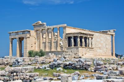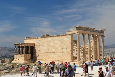 アクロポリスの丘にある神殿で、現在ここで建った姿で見ることのできる3つの神殿のうち一つです。パルテノン神殿はもちろん有名ですが、この神殿もその芸術的価値が高く、見どころの一つです。その理由は、側面に張り出した柱廊にあり、6本のカリアティードという女神の像により支えられているからです。