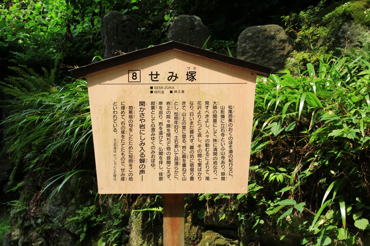 せっかく山寺へ行ったので、松尾芭蕉の資料館があるということで、足を延ばしてみました。が、山寺付近から1km先と書いてありましたが、山へ登って1km。歩行者は会談がありますが、山寺へ1時間かけて登った後ならかなりハードです。徒徒歩道は周りに俳句の書かれた石が並べられており、それらを見ながら登るのも良いと思いますが、自分は途中で引き返し、車で行きました。