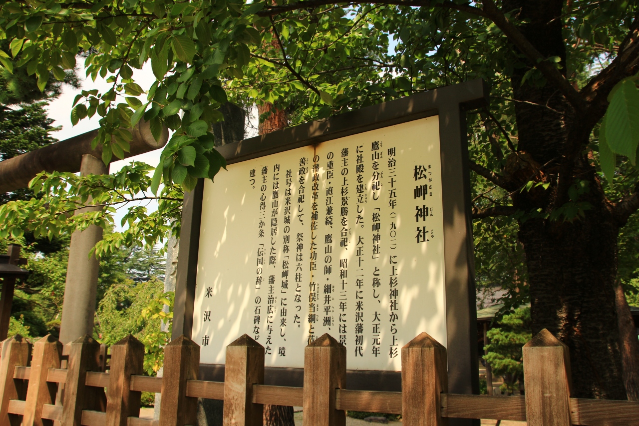 こちらは地図から見ると、上杉神社の中にある一番有名な像のようですが、このほかにも、松が岬神社の横の公園内に一体、上杉伯爵邸の庭にも一体と、自分が簡単に回った中でも3体の銅像を見かけました。ということで、多分ほかにもあるでしょうから、市内を探し回ってみるのも面白いかもしれません。
