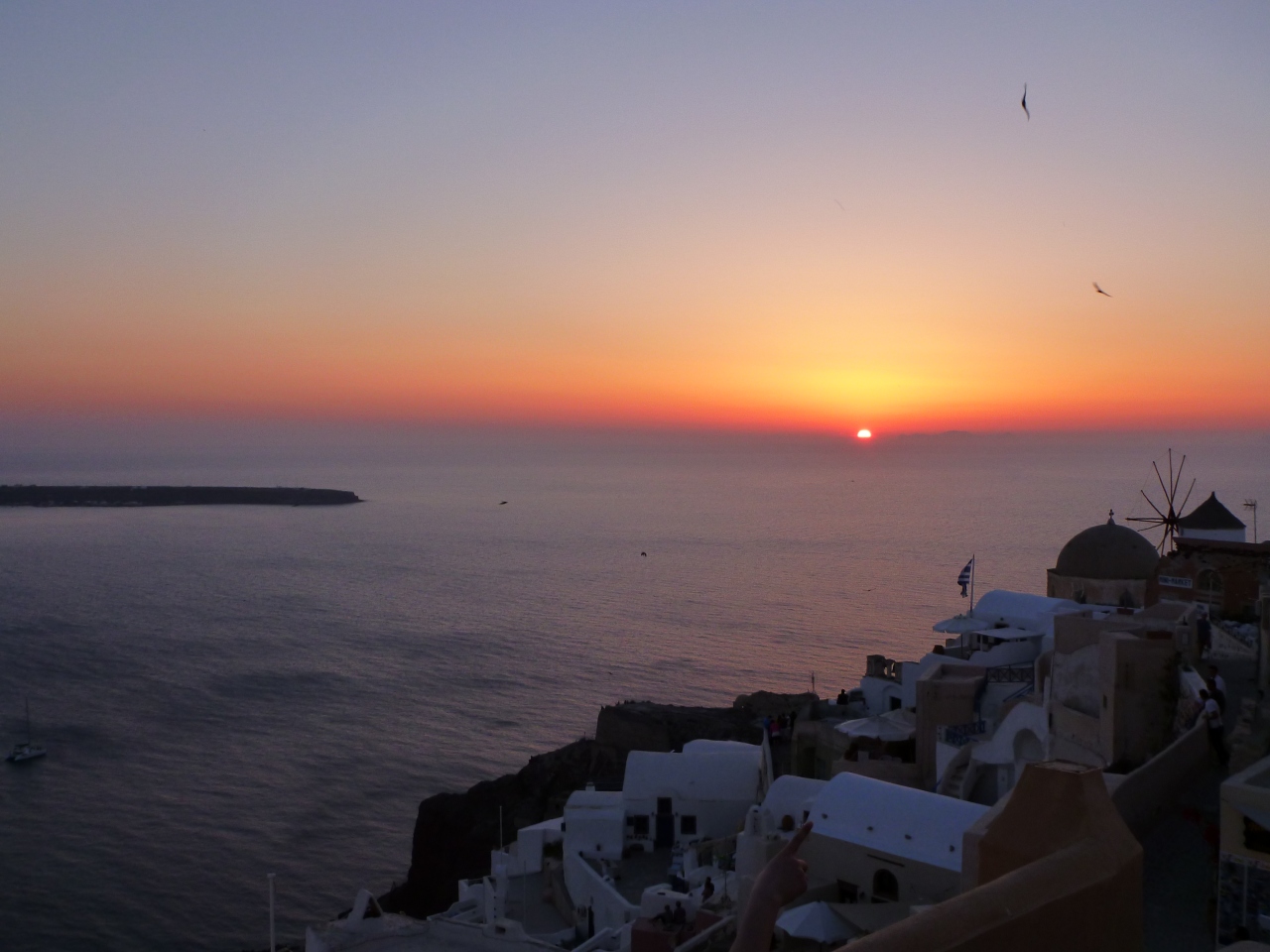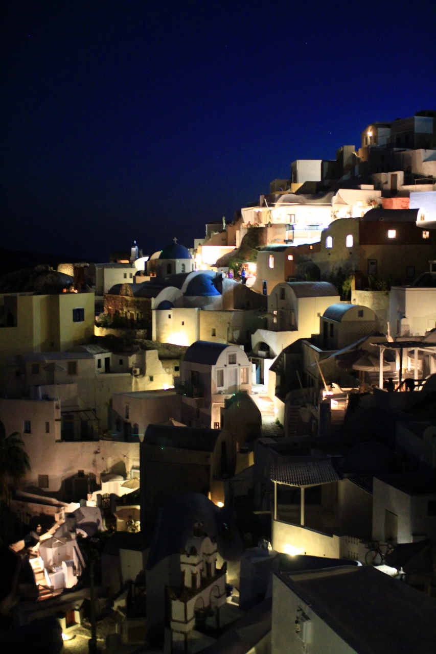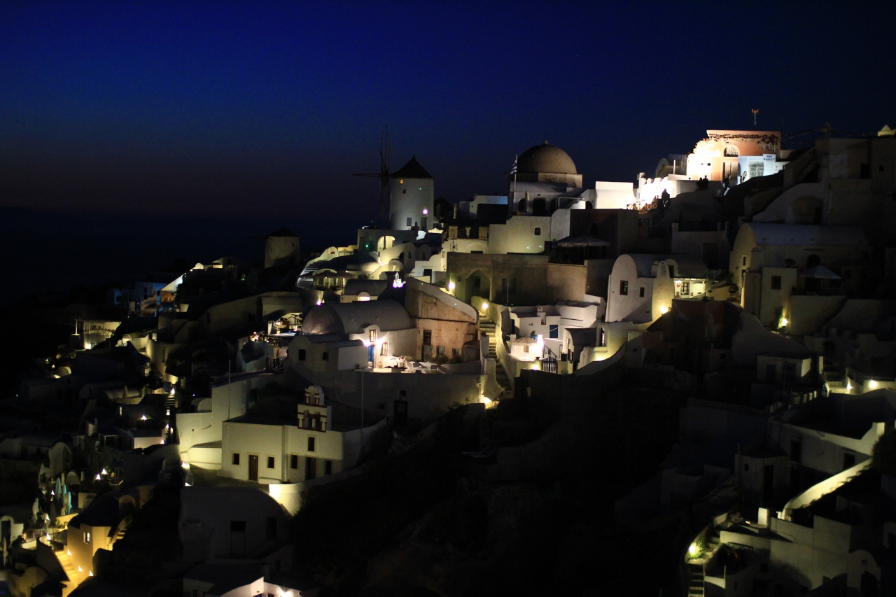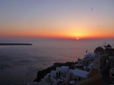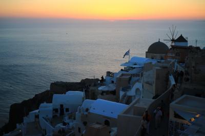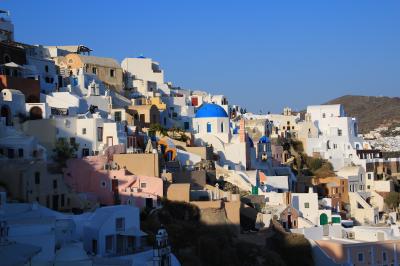 とは言っても、ここは夕日の名所で、周囲の白い町並みも絶景で夕方になるとたくさんに人が押し寄せます。私も初日に夕暮れの大混雑の中カルデラの向こうに沈む夕日を見ていましたが、夕日よりも照らされた町並が見事でした。