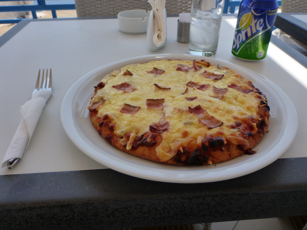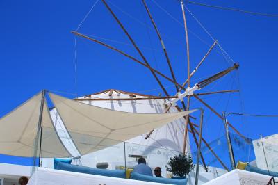 メニューはギリシアというよりもイタリアン中心で、ランチではパスタとかピザを頼んでいる人が多かったです。味は普通だと思いますが、値段はあまり無茶ではありませんでしたので、好感が持てました。でもやはりここも景色を見るためのレストランという感じがしました。- 旅行時期