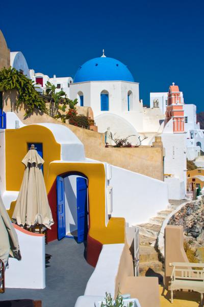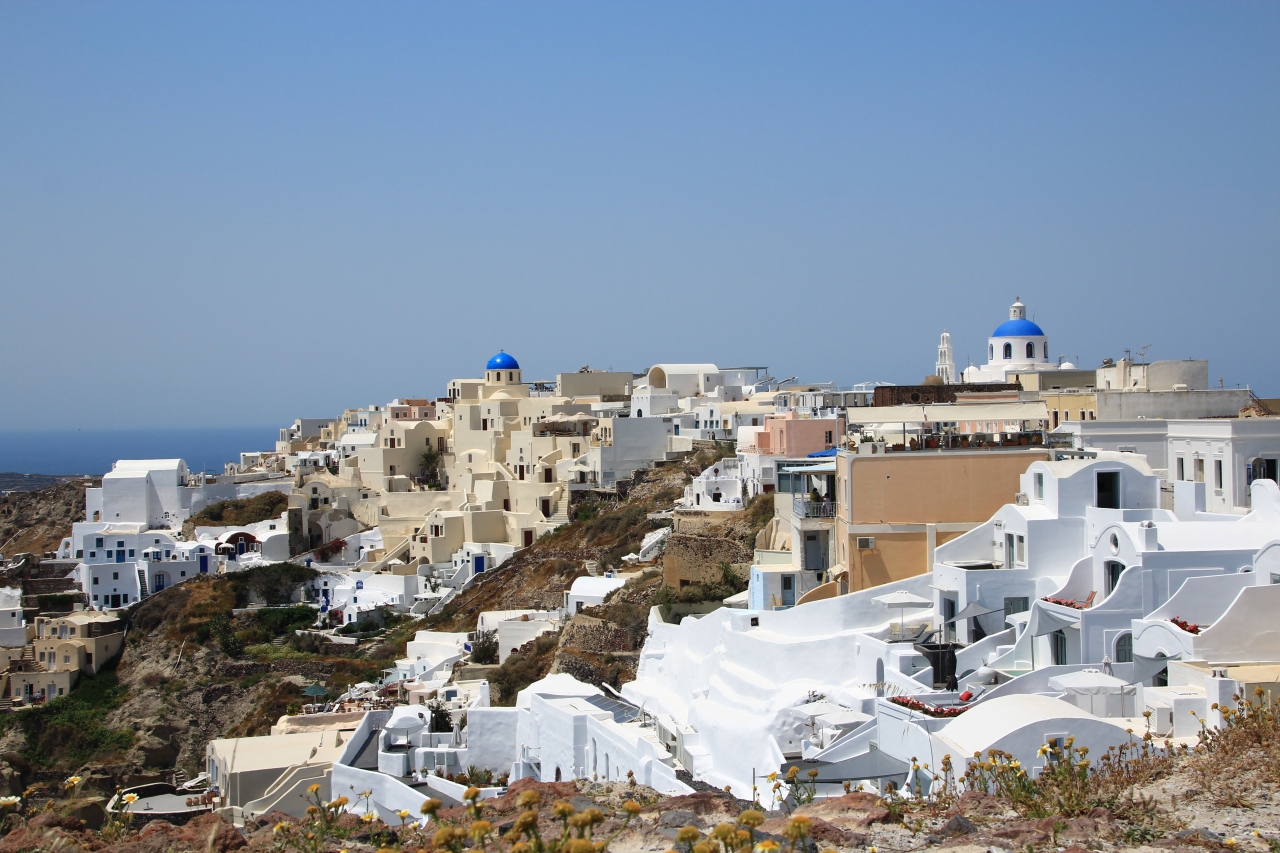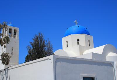 街の光景はフィラと同じような感じですが、高級感があり、また、良く絵葉書などで使われる白い鐘のある青屋根の教会はこの地区にあります。しかし、残念ながら私はちょうど良い撮影スポットが見つけられなく、四苦八苦してしまいました。