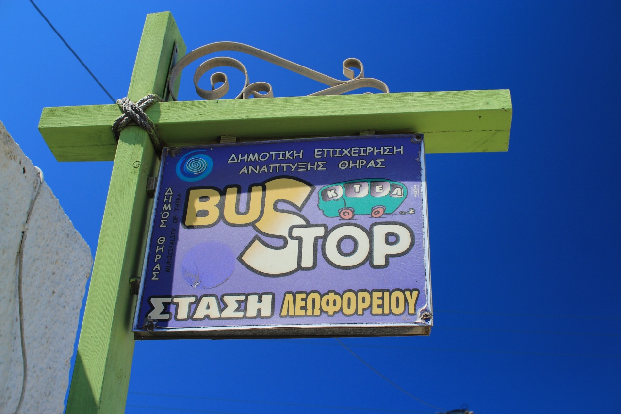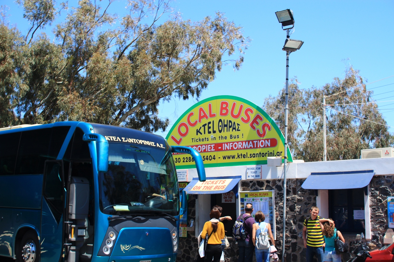 サントリーニの島内を移動するのはバスが便利です。というか、タクシーも少なく、レンタカーでも借りなければ他に手段はないと言っても良いです。
