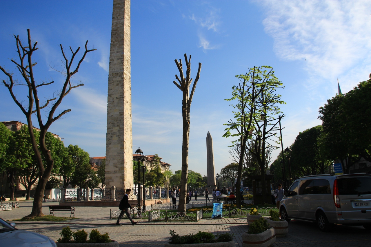 広場の中には3本のオベリスクがあり、うち、青銅の蛇の柱は途中で折れていますが、残りの2本は遠くローマ時代から続いています。