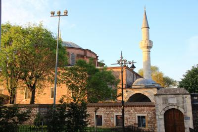 見たところ、確かに形は似ているのですが、写真で見たことのあるアヤソフィアと比べ全然小さい。でも入口前にある看板ではやはりアヤソフィアとなっている。そこで、ガイドブックを見ると、「キュチュック・アヤソフィア」というのが正式で、同じようにキリストからジャーミィに改装された寺院さそうです。同じような時代にビザンツ様式として建てられたものですので、リトルアヤソフィアとして親しまれているようです。