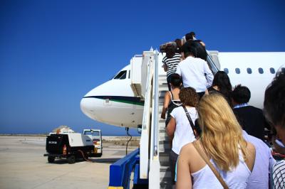 飛行機はギリシア国内のエーゲ航空とオリンピック航空がアテネから約4~50分で結んでいますが、他にも格安航空会社や、他の国からのチャーター便も見かけました。