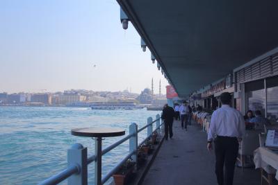 この橋は2層構造で、上層は自動車と路面電車が通るところで、ここは普通なのですが、下層は大レストラン街になっています。橋のすぐ前はボスポラス海峡に面しており、多くの人が釣り糸を垂らしていますが、その脇には魚市場もあり新鮮な食材が手に入ります。ということで、この橋のレストランはほとんどシーフードを扱っていて、特にトルコ名物鯖サンドが有名です。