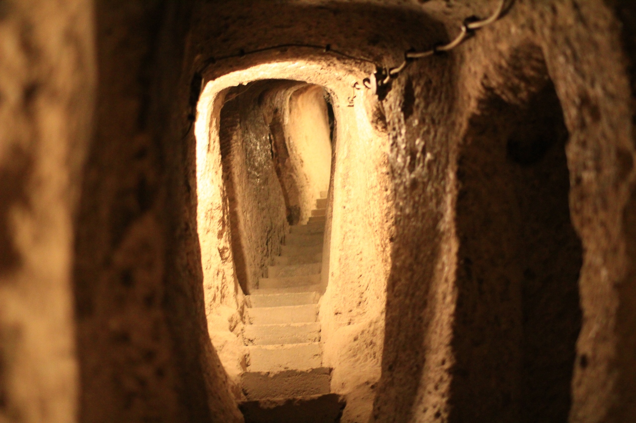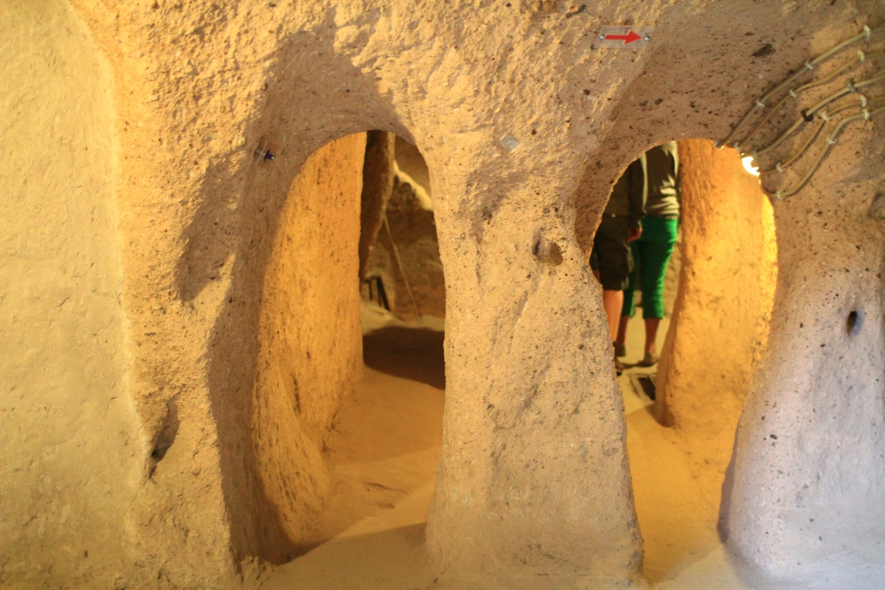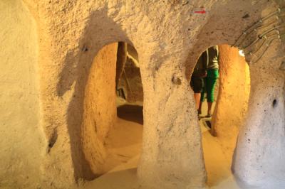 ここは中世のキリスト教徒がイスラム教の侵攻に対して隠れて信仰を守るための地下都市ということで、入口からは想像もできないほどの迷宮というような地下都市が広がっています。観光では地下4階までしか入れませんが、その下にも続いており、崩落の危険があるため、全体像は全くわからないそうです。