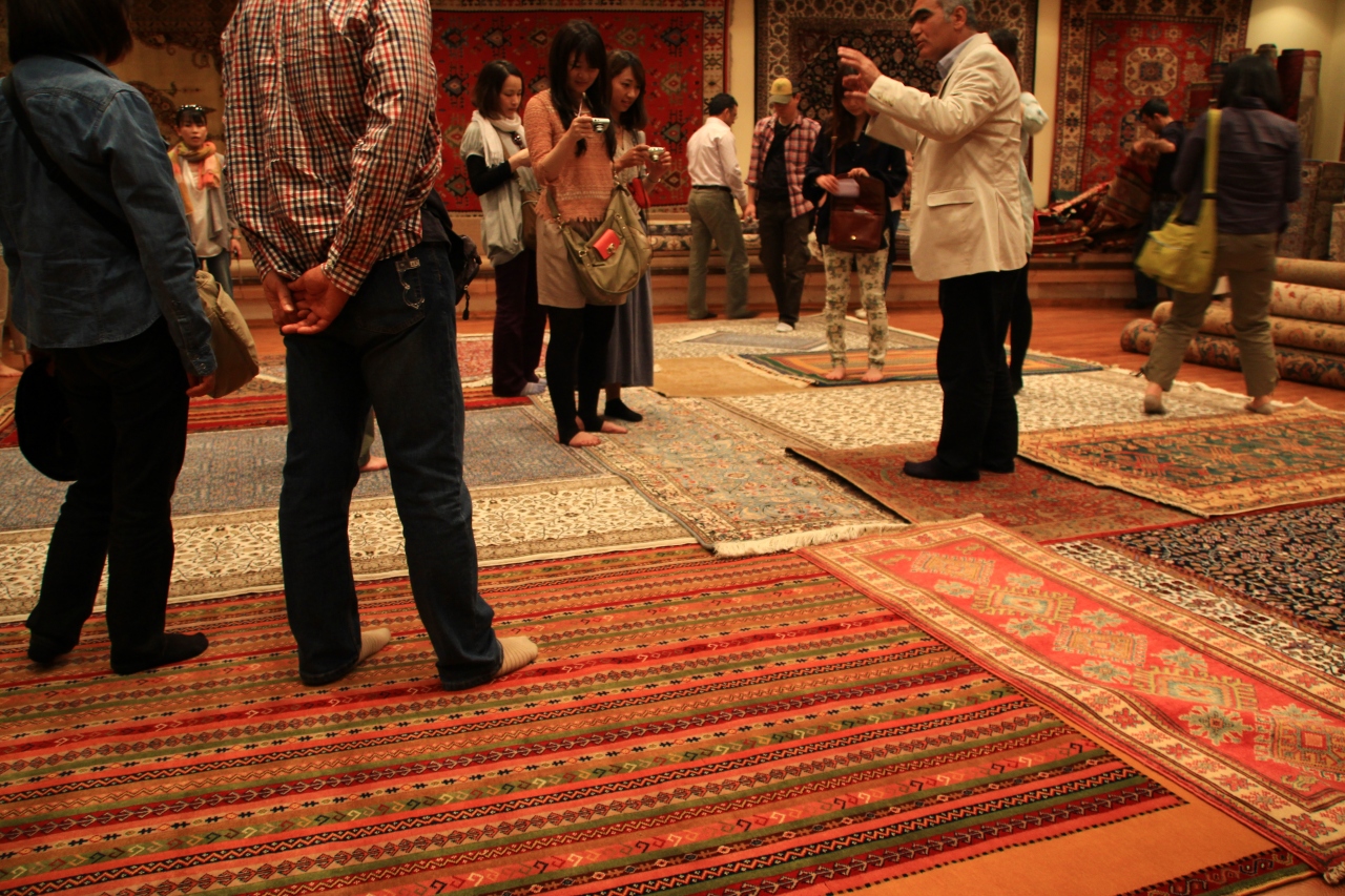 観光に疲れた後ですので、冷たいチャイやワインをもらい一休みしながら絨毯のできるまでを説明してくれる、のは良いのですが、その後は長時間に渡って絨毯の商談会の開催です。