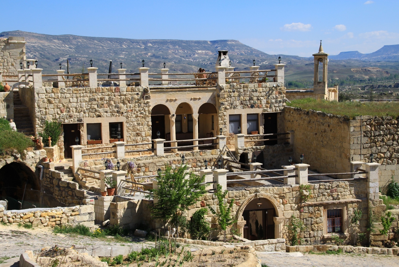 ユルギュップの高台にあり、4ODAホテルの隣です。ということは、位置的にはかなり良い場所にあり、屋上からはエセンテベの奇岩群から、遠くギョレメに上がる多くの気球も見れます。