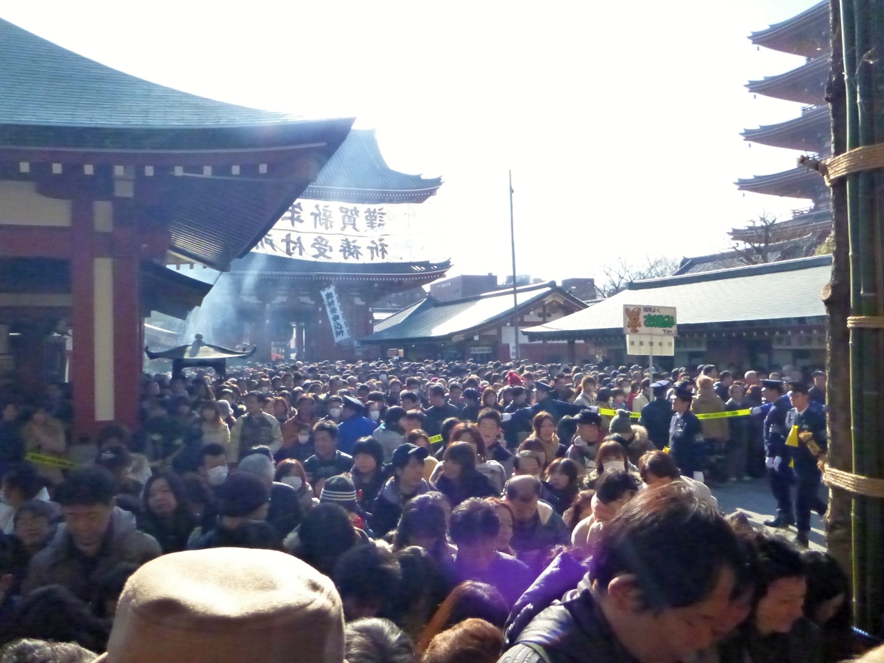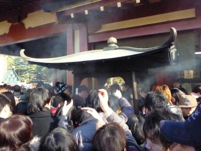 浅草寺への初詣に行くついでに行きました。というか、仲見世通り自体が参道ですので、本道に続く大行列の中を歩いて行ったような感じでした。