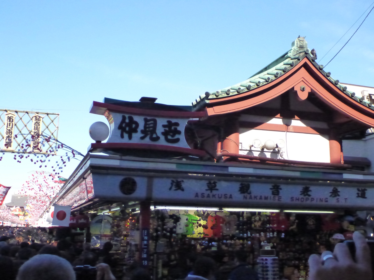 天気も非常によく、横にはスカイツリーが見事に見えましたが、もちろんのこと、大変な混雑で、列の最後尾は雷門よりかなり先まで続いていていました。
