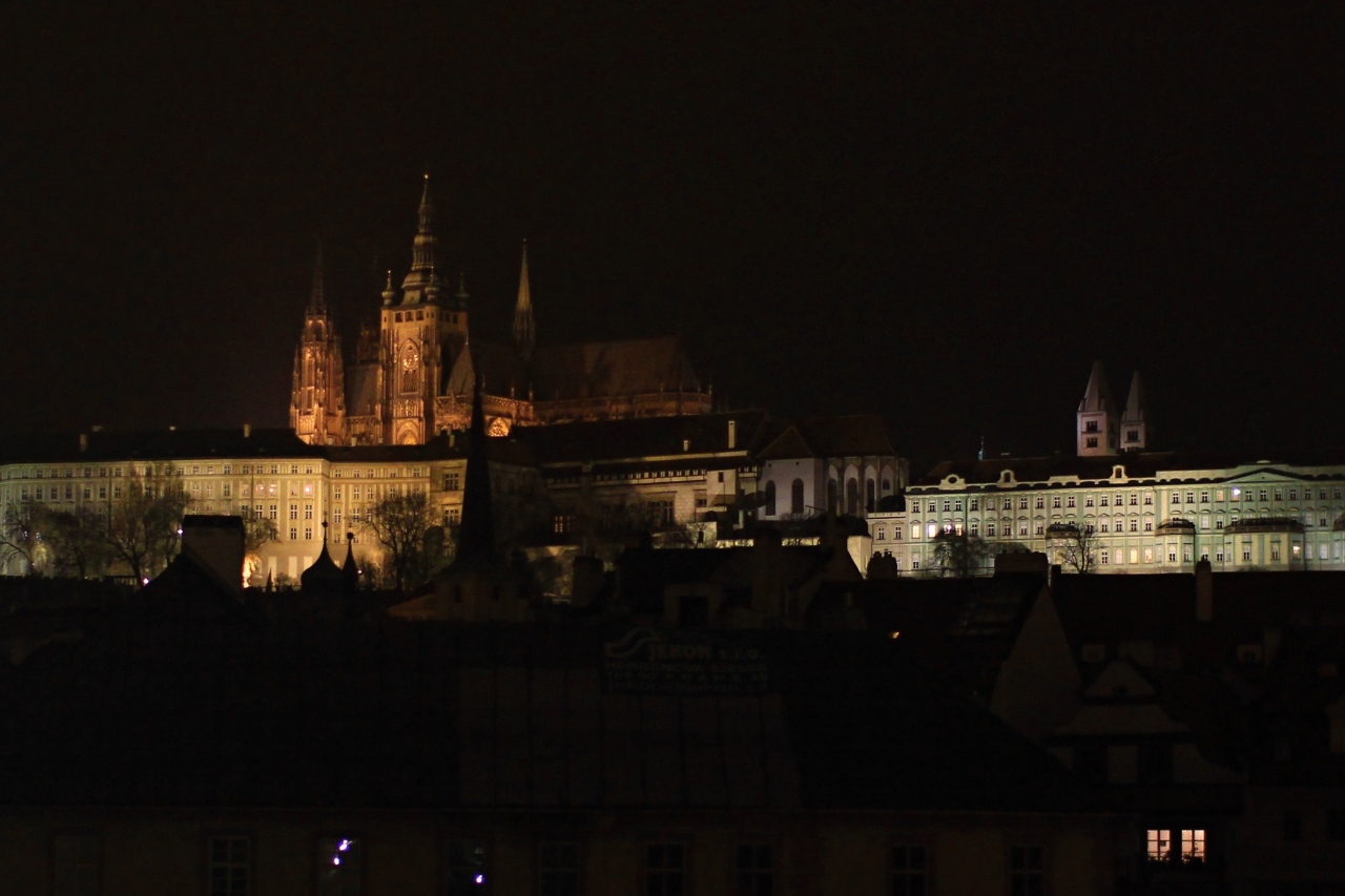 そうした広い意味でのプラハ城に関してですが、特にカレル橋の付近から見た城の丘一体の景色は素晴らしく、昼でも夜景も見ごたえがあります。