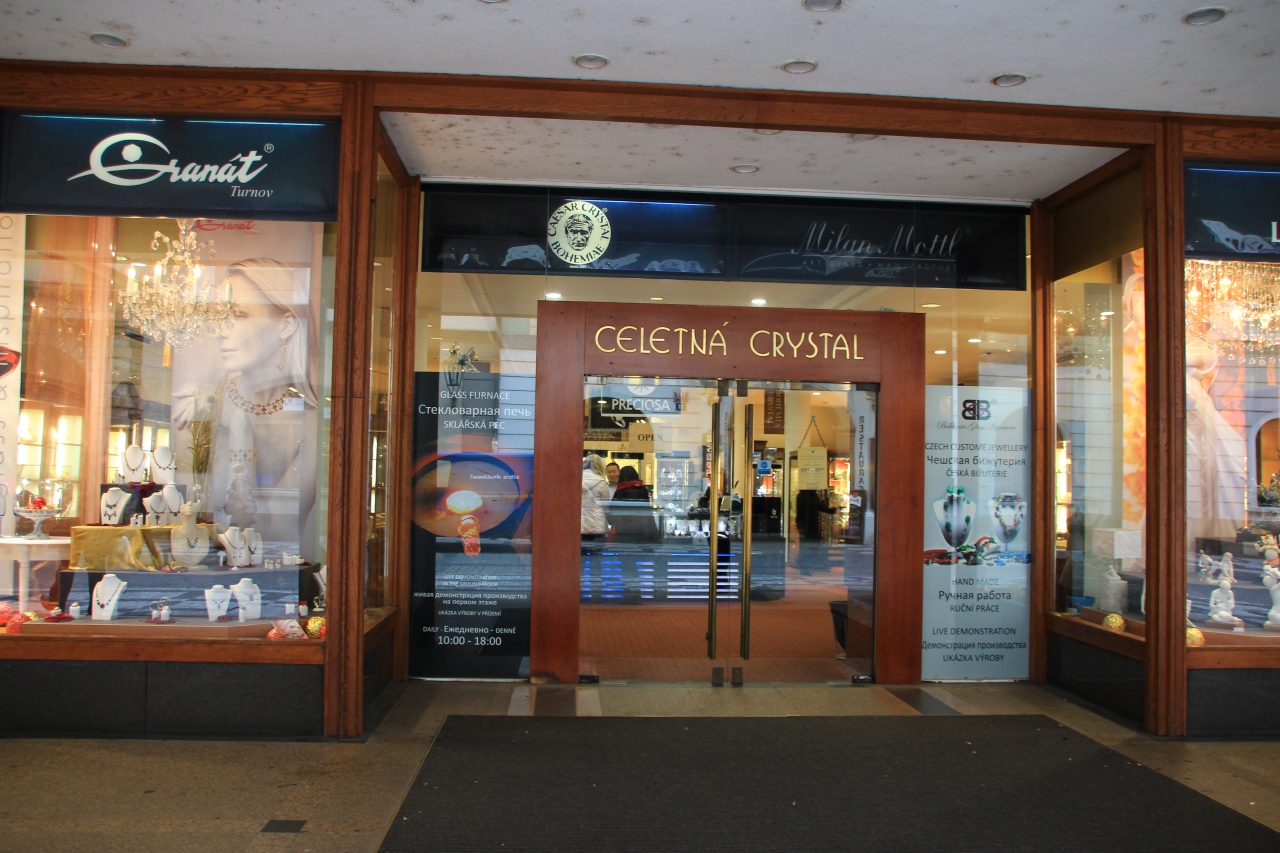 プラハの旧市街広場から市民会館の方面に向かう通り沿いにあるボヘミアングラスのお店です。日本人の店員もおり、免税も取り扱うということで、立ち寄ってみました。