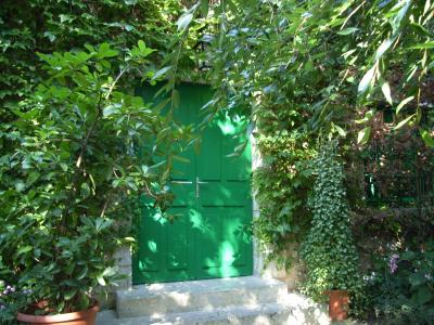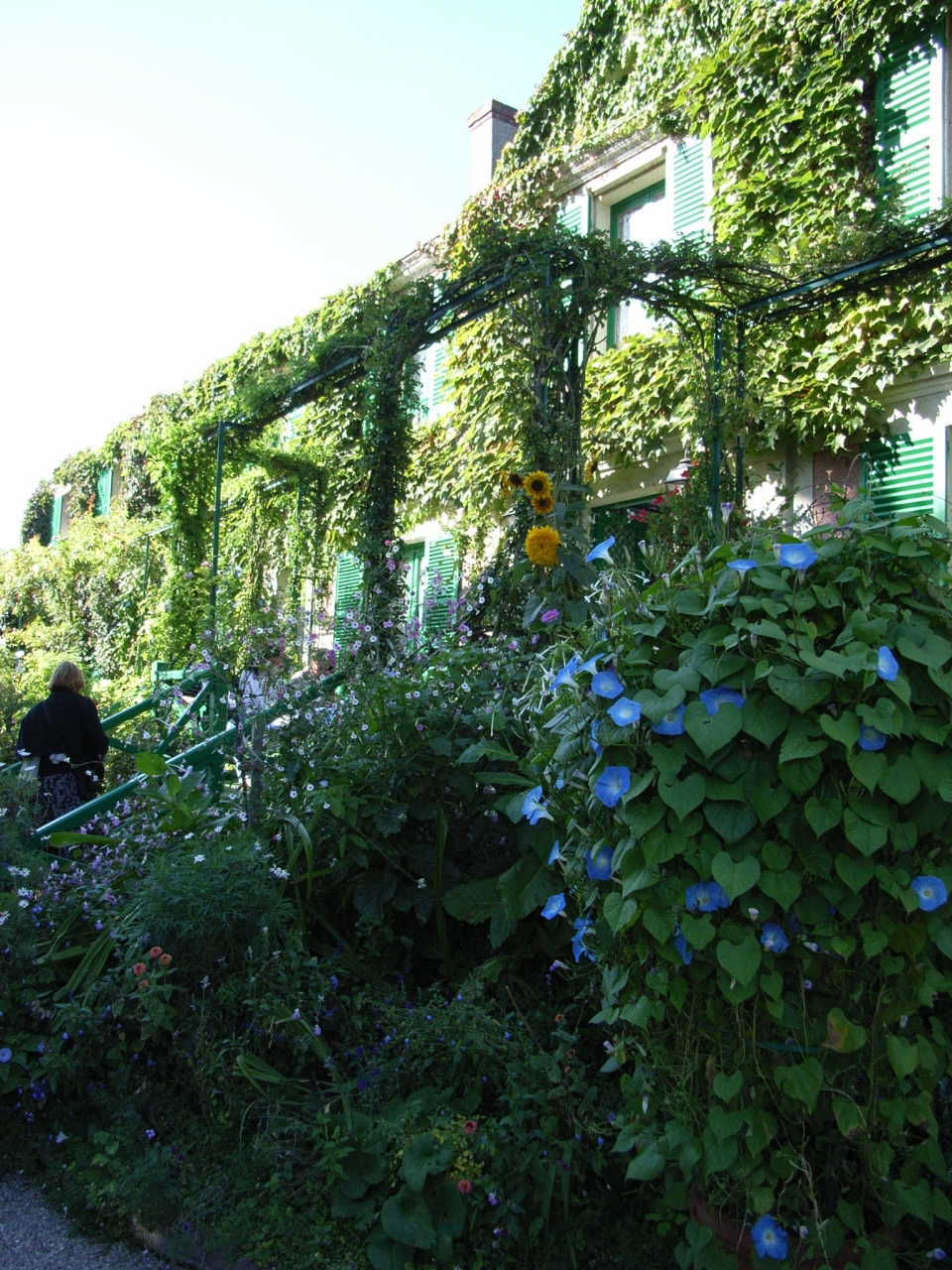 家は見事なまでの蔦で覆われ、緑一色ですが、家の前の庭園には色とりどりの花が咲き乱れ、見事な対比をなしています。