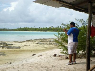 ランギロア島では幾つかアクティビティがありますが、観光客が少ない場所のため、参加が2組以上いないと催行されないものが多く、選択肢は限られてきます。その中でも人気なのが、ブルーラグーンへのピクニックです。ピクニックといっても、歩いていくのではなく、スピードボートで環礁内の無人島へと往復し、帰りにシャークフィーディングとシュノーケリングを楽しむという、丸一日がかりのツアーです。私たちが申し込んだ時は日本人6人、外国人4人の計10人での催行でした。