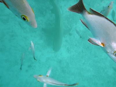また、この環礁内には鮫の子供が沢山いて、浅瀬までやってきます。小さいので全く怖くありませんが、小さいうちはこうした安全な場所で育って、大きくなったら外洋に出て行くのでしょう。