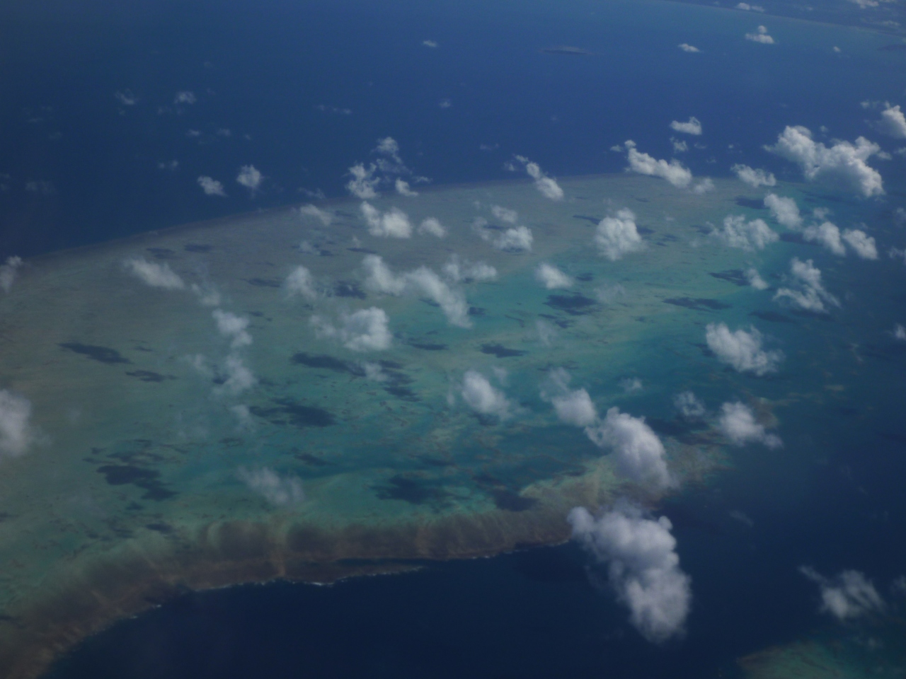 高空から眺めると、人間の手のついている環礁なんてほんのわずかであることがわかります。これからもこの手付かずの自然を大事にいていってもらいたいものです。