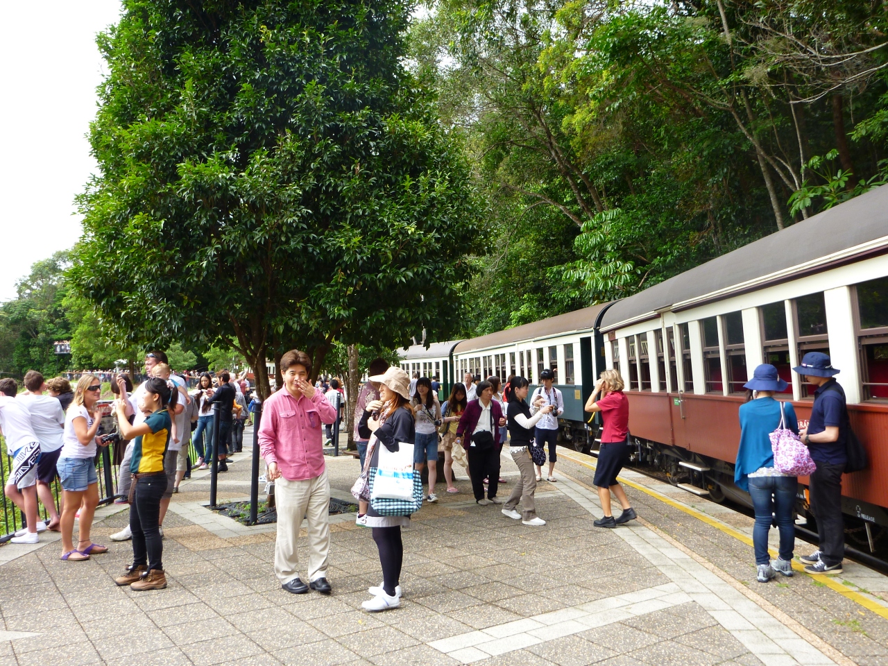キュランダ鉄道はケアンズとキュランダの間の熱帯雨林の中を走る列車で、開業当時は木材や鉱石の運搬の目的であったようですが、現在は観光列車となっています。