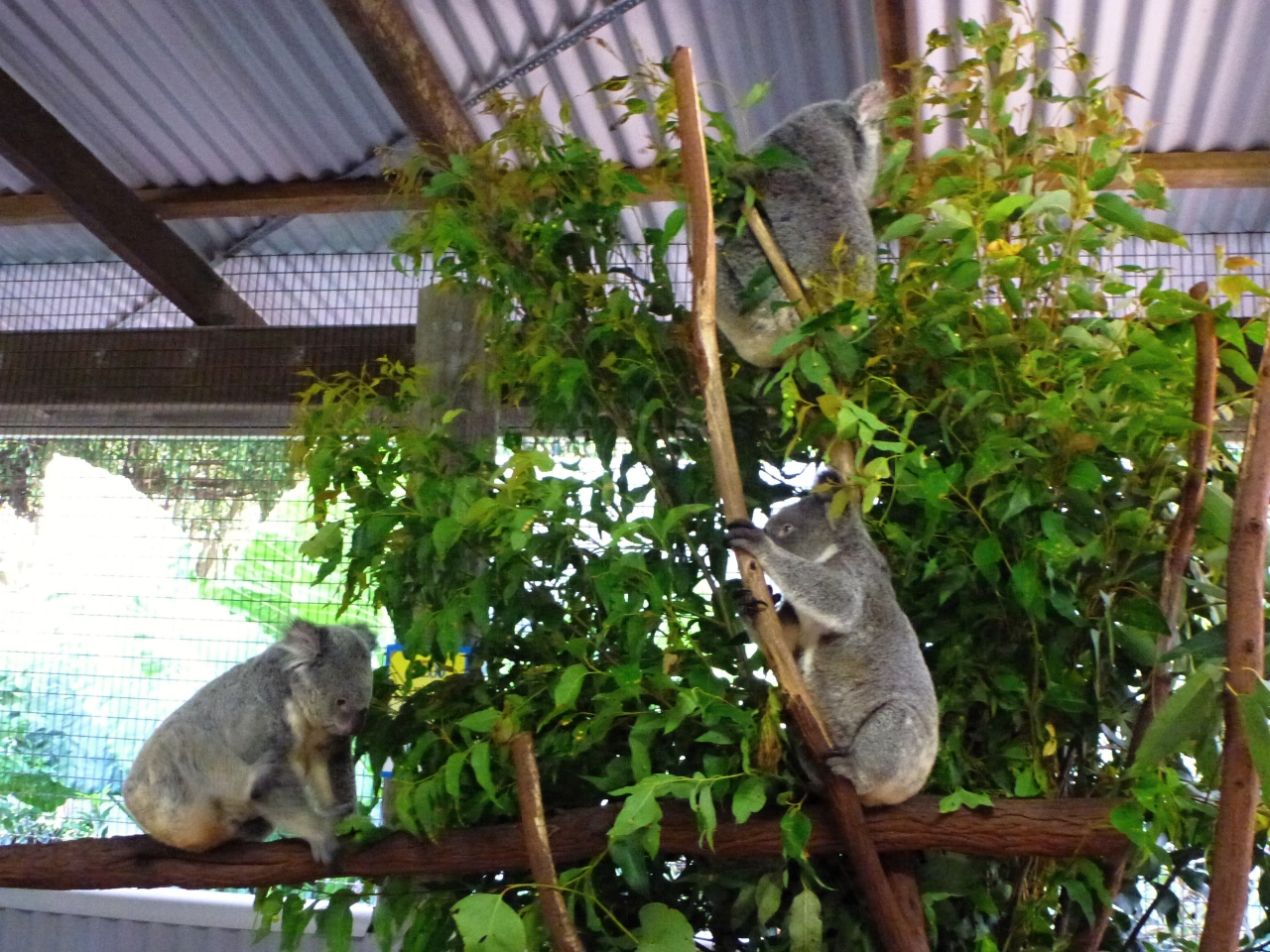 GWということで日本人観光客が多く、全員がコアラ抱っこ希望だったので、自分が行ったときでも50人近くが並んでいて、一人30秒程度のほぼ流れ作業でした。ただ、園内のあちこちにコアラがいるため(コアラ舎だけでなく、何故か他の動物の飼育舎に一緒に入れていたり)、見る分にはいくらでも見ることができて厭きませんでした。