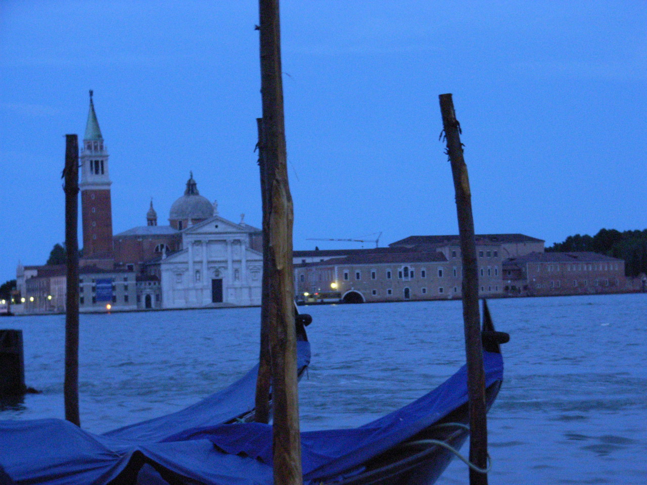 サンマルコ広場から見る光景も良いですが、紫色に染まりゆく夕景の中浮かび上がる教会の光景もお勧めです。